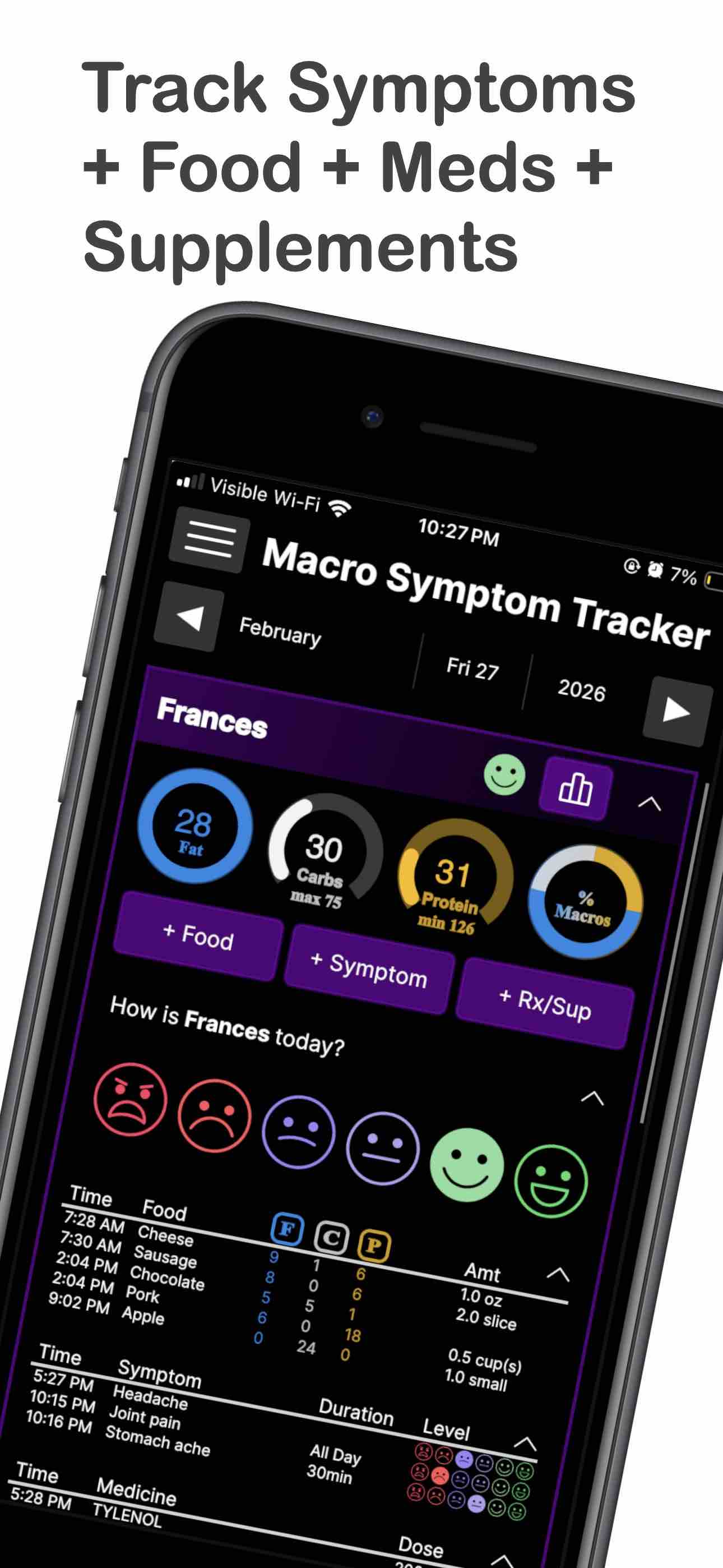 - Track dietary macros, symptoms, medications, and supplements all in one place?